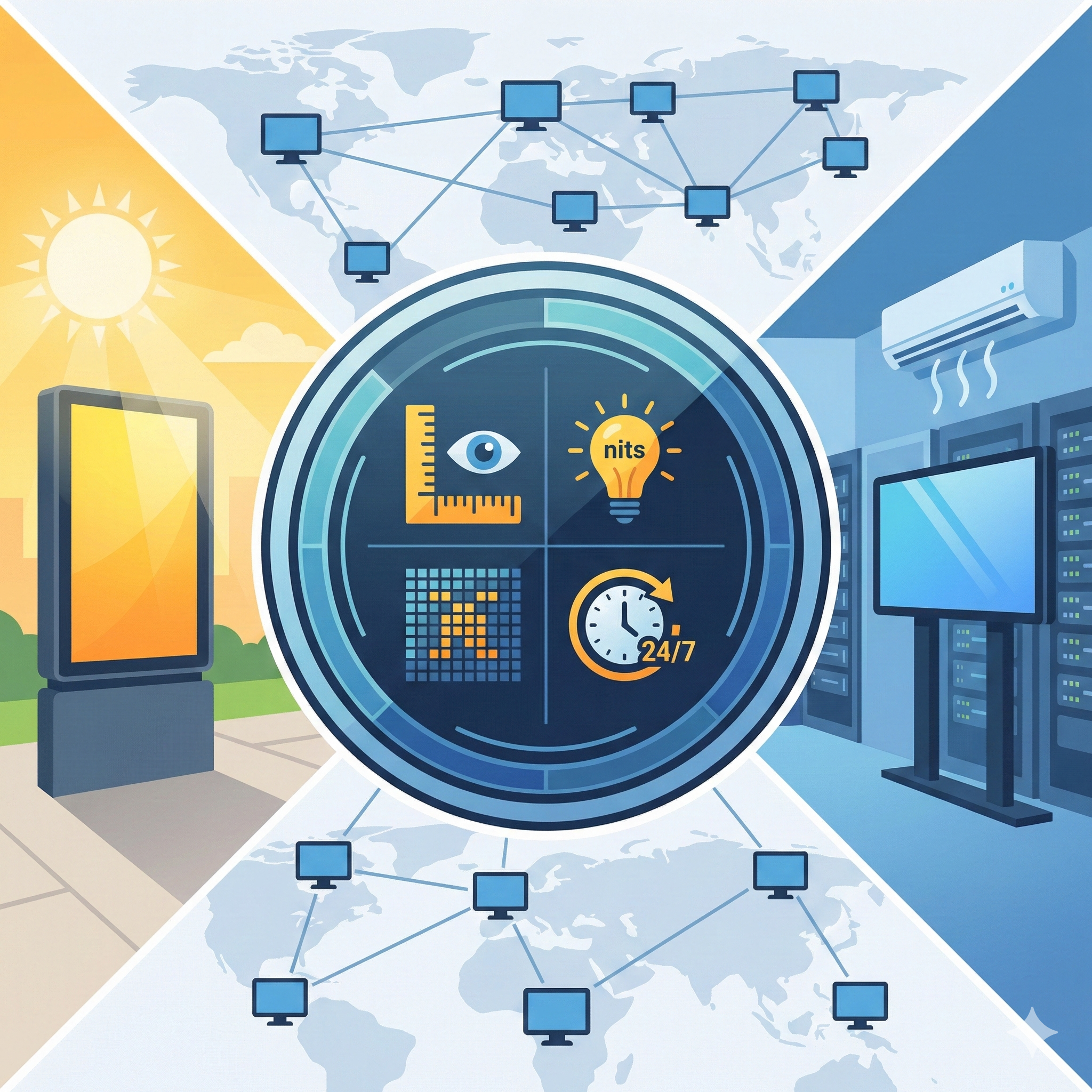 Le choix d’un écran d’affichage dynamique repose sur plusieurs critères techniques essentiels. La taille de l’écran doit être adaptée à la distance de lecture, la luminosité et la résolution doivent garantir une parfaite lisibilité, et l’écran doit être conçu pour un usage intensif professionnel, parfois 24 heures sur 24.
