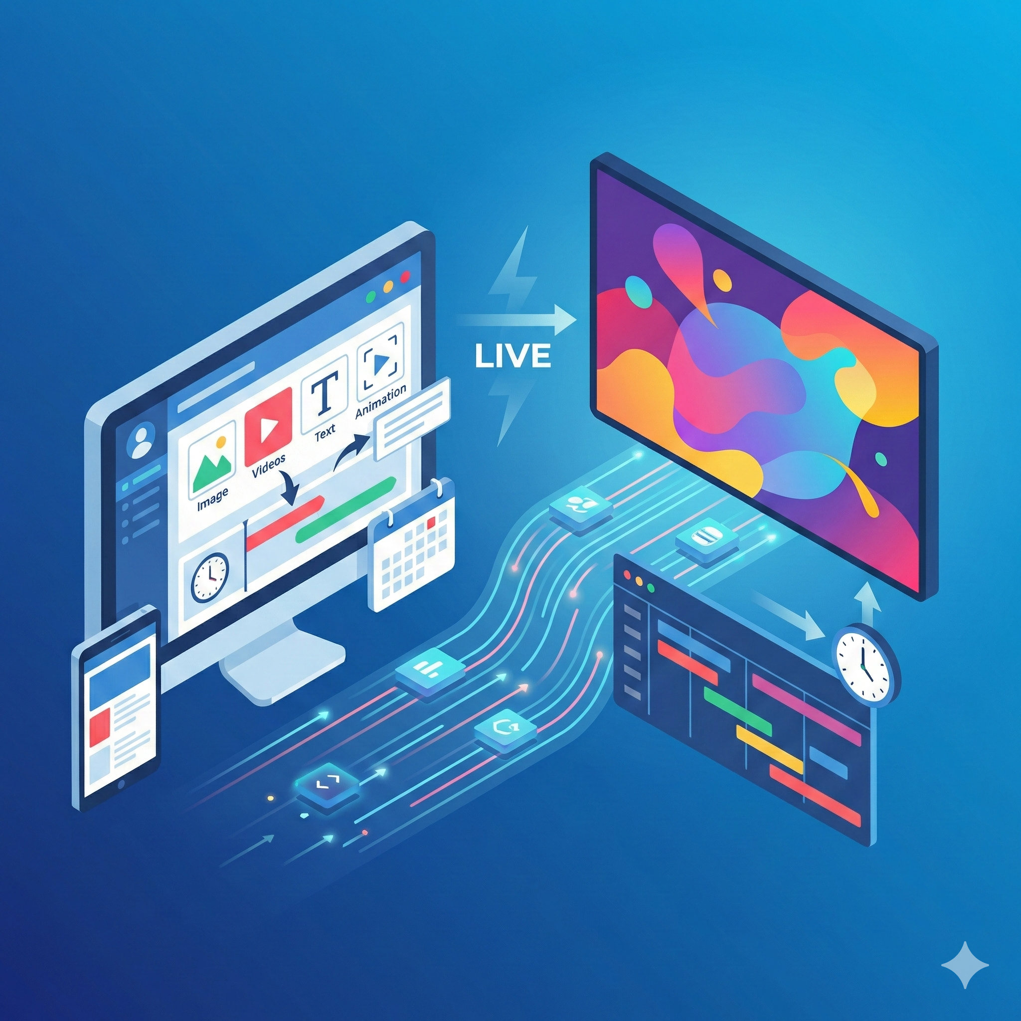 La gestion des écrans s’effectue via un logiciel d’affichage dynamique dédié. Celui-ci permet d’administrer un ou plusieurs écrans depuis une interface unique, en local ou à distance. Les contenus peuvent être modifiés, planifiés ou dupliqués sur plusieurs écrans en quelques clics.