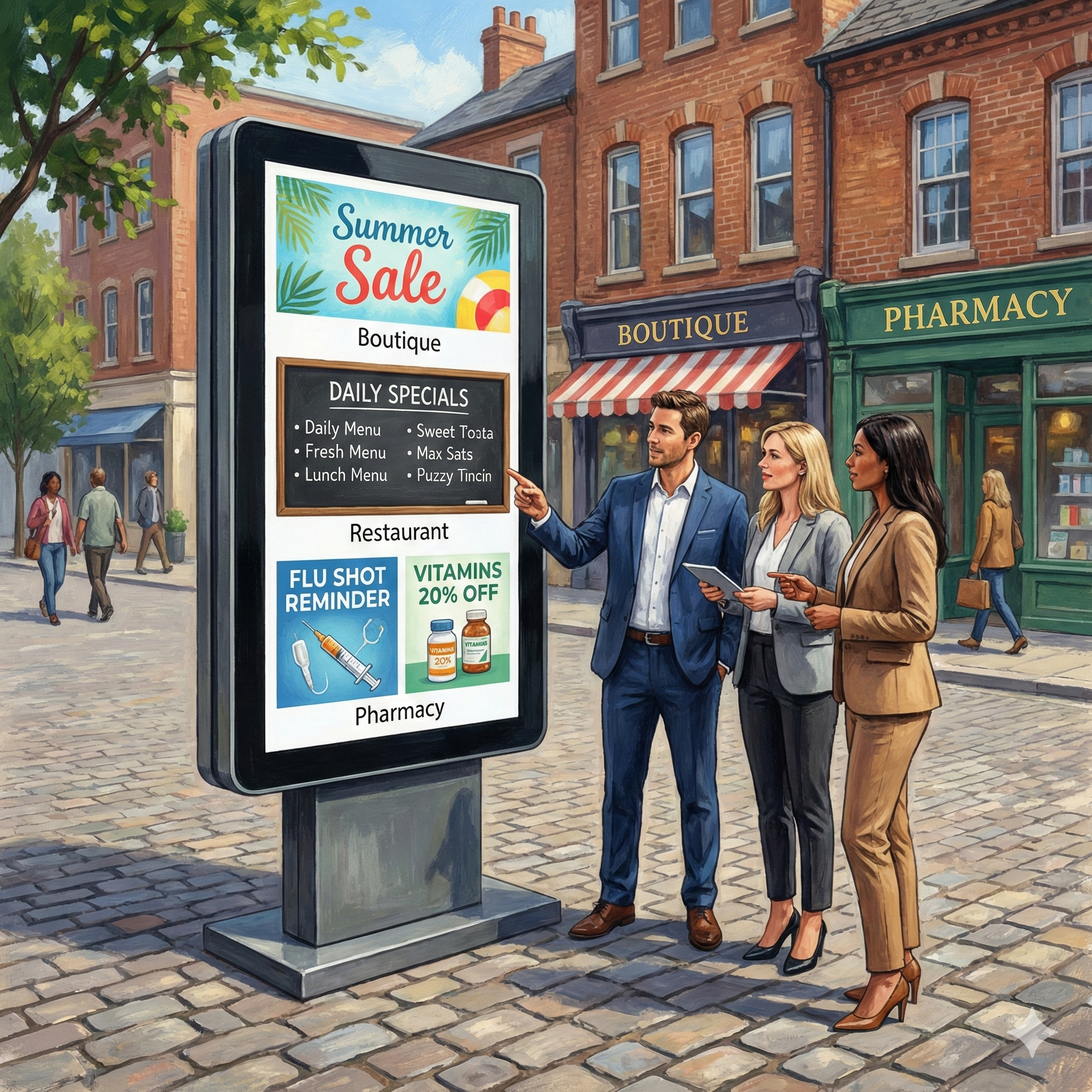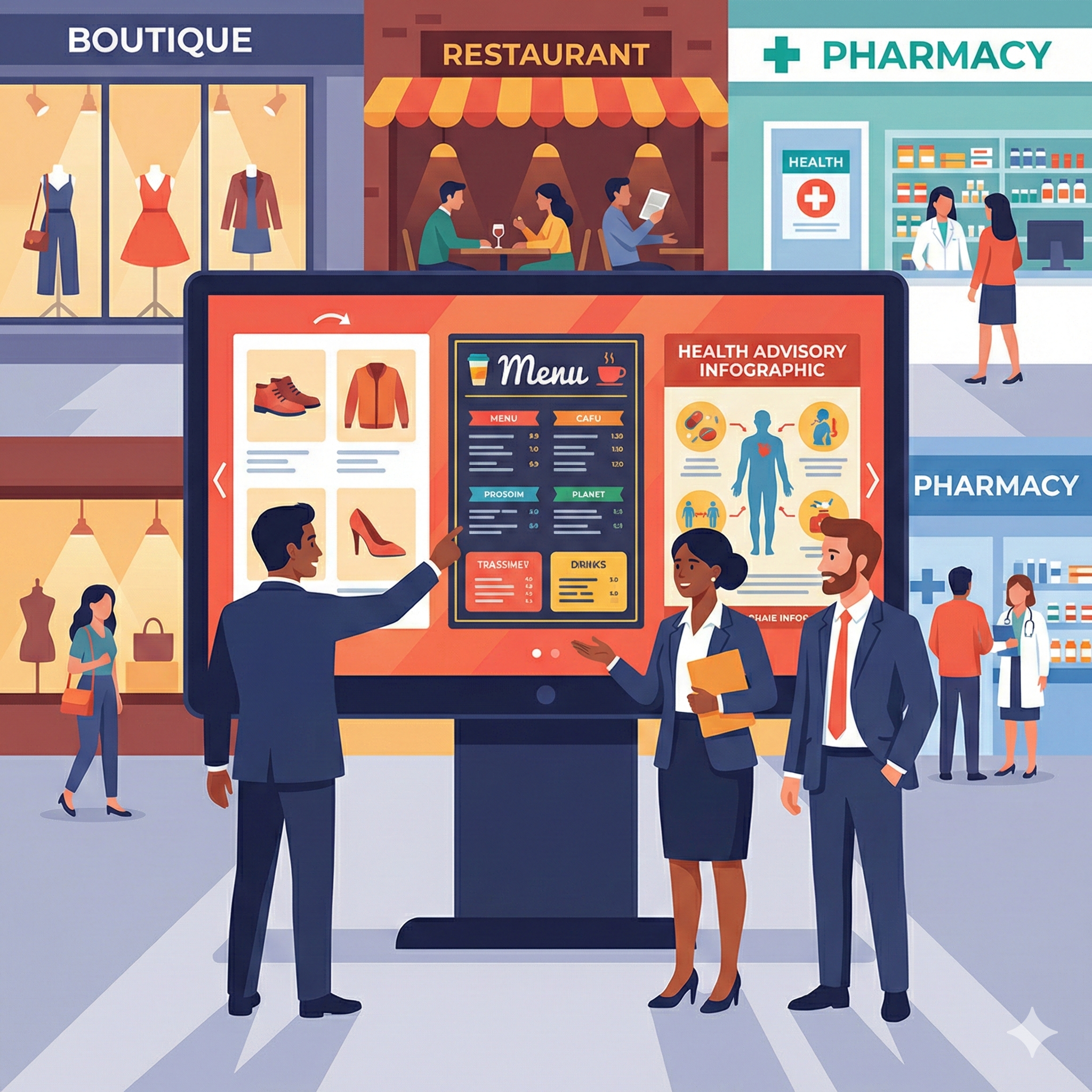 Dans un environnement commercial, l’écran d’affichage dynamique joue un rôle clé. Il attire naturellement le regard, met en valeur les offres, promotions et informations utiles, et améliore la lisibilité des messages diffusés en magasin. En vitrine, il capte l’attention des passants. À l’intérieur, il guide, informe et rassure les clients tout au long de leur parcours.