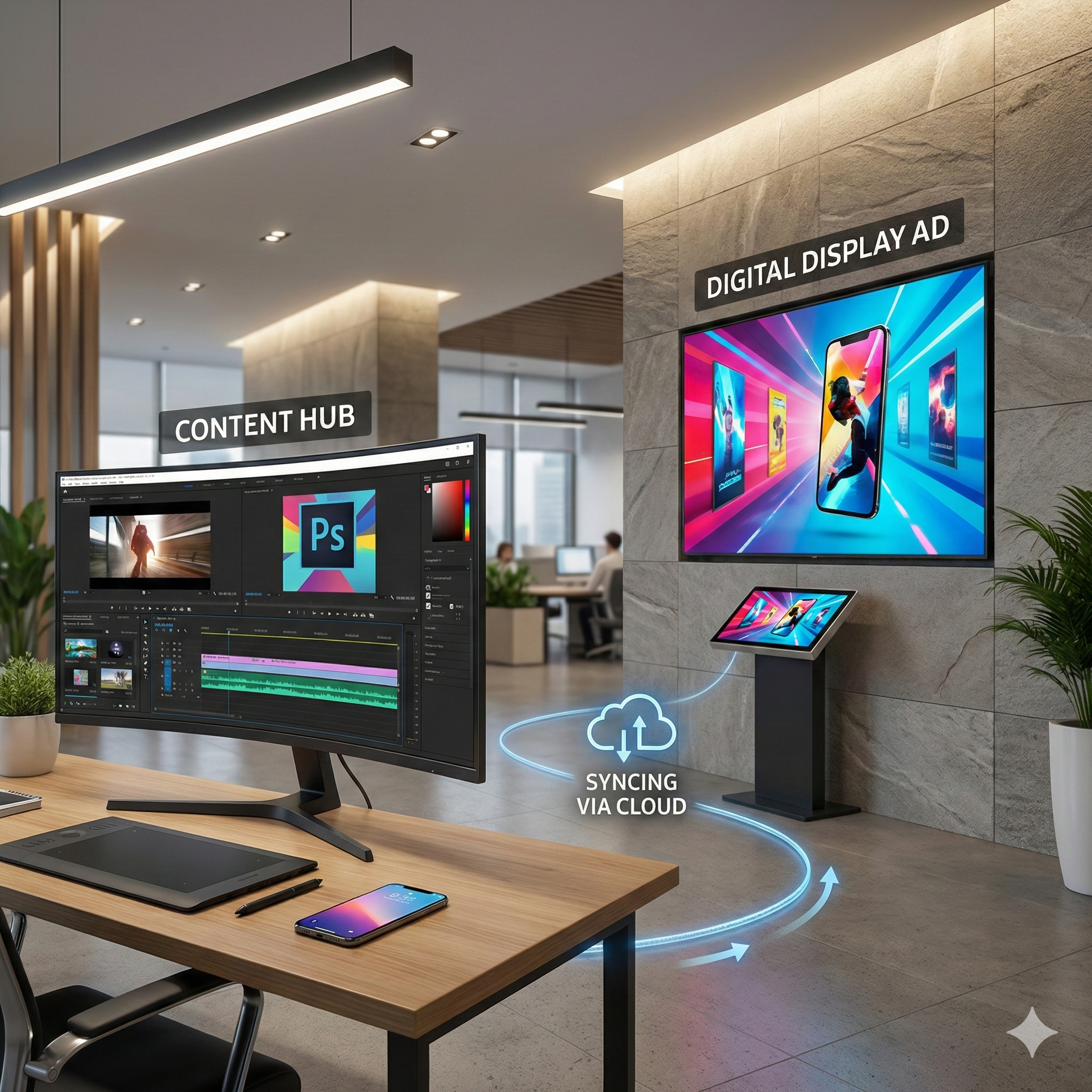 L’affichage dynamique est avant tout un outil de communication en temps réel. Il permet de faire évoluer les messages instantanément, sans impression ni intervention manuelle sur site, ce qui en fait un levier efficace pour les points de vente et les espaces commerciaux.
